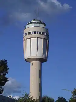 The Goldbergturm is a 51 metre high water tower on the Goldberg (gold mountain) at 48°42′06″N 9°01′03″E / 48.70167°N 9.01750°E in Sindelfingen, Germany. The Goldbergturm was built in 1963 and has in its basket, besides a water reservoir, a restaurant from which a stairway runs to its open-air observation deck.