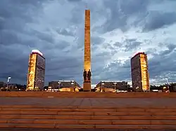 2. ^ Including 2 figures at the stele and 6 characters of the Blockade group, there are 34 of them in all compositions of the memorial.