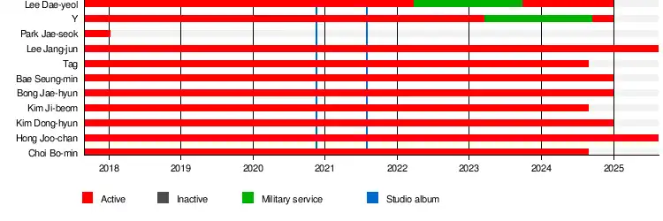 On March 29, 2022, Lee Dae-yeol became the first member of the group to participate in mandatory military enlisting in the 3rd Army Brigade.[84] He was officially discharged on September 28, 2023.[85]