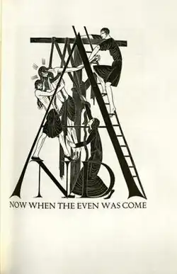 An artwork by Eric Gill for the Golden Cockerel's 1931 edition of the Gospels.[3]