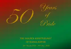 "50 Years of Independence" is written in red and green, the colors of the national flag of Bangladesh.