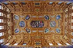The Goldener Saal (Golden Hall) is a ceremonial room in the 3rd floor of Augsburg Town Hall, which is famous for its ceiling paintings, murals, and golden wall decoration. It was finished in 1643 and is one of the most important cultural monuments of the late Renaissance.