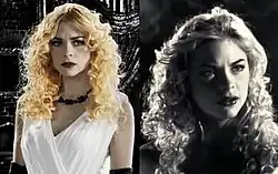 Both twins are portrayed by Jaime King in the 2005 film adaptation[4] as the two twins in the second story in the film The Hard Goodbye.[5] The actress reprises her role in the 2014 sequel based on A Dame to Kill For.[2] In the former film, they are both blondes and look identical.