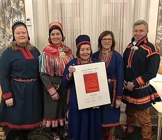 5. ^ "Två kvinnor hedras med språkpriset Gollegiella 2010" [Two women honoured with the Gollegiella 2010 language award] (in Swedish). Sámediggi. Retrieved August 7, 2019.