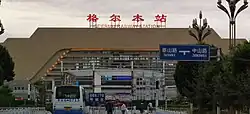 Golmud railway station, Geermu railway station or Ge'ermu railway station (simplified Chinese: 格尔木站; traditional Chinese: 格爾木站; pinyin: Gé'ěrmù Zhàn) is the main railway station of Golmud in Qinghai (China). The station is located at 2829 m above sea level and opened in 1979.[1]
