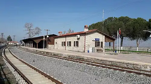 Goncalı railway station (Turkish: Goncalı istasyonu) is a railway station in the village of Goncali, Turkey. Located about 9 km (5.6 mi) northwest of Denizli, the station is also a junction where the Goncalı-Denizli railway splits off from the İzmir-Eğirdir railway. TCDD Taşımacılık operates a daily inter-city train from Denizli to Eskişehir, as well as regional train service to İzmir and Söke.[2] Goncalı station was opened on 13 October 1889 by the Ottoman Railway Company.[3]