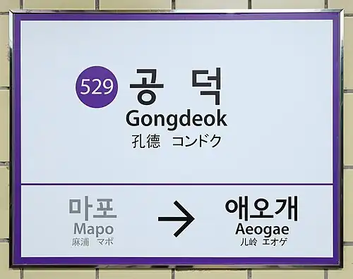 1. ^ a b c d 공덕역 (in Korean). Doosan Encyclopedia. Retrieved 2014-11-17.
