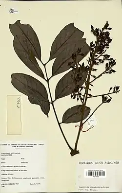 - ^ Morat, P.; Jaffré, T.; Tronchet, F.; Munzinger, J.; Pillon, Y.; Veillon, J.M.; Chalopin, M. (2012). "The taxonomic reference base Florical and characteristics of the native vascular flora of New Caledonia" (PDF). Adansonia. 34 (2): 179–221. doi:10.5252/a2012n2a1. S2CID 85671347.