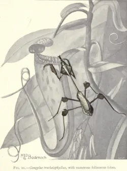 Gongylus trachelophyllus is a praying mantis in the family Empusidae which is characterized by extremely slender limbs with large appendages.
