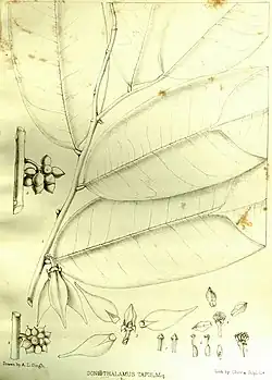 | Botanical illustration of Goniothalamus tapis.[1] | |
