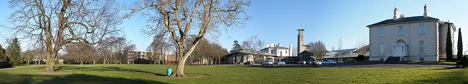 The school is located 4.4 km (2.7 mi) from Dublin city centre[7] on a large area of land including a front lawn with cricket crease, rugby pitches and tennis courts. The school buildings include a library, chapel, clock tower, theatre, priests' residence, science block, and 84 individual classrooms. The architecture of the school mixes modern copper-roofed buildings with older period houses. Some sections of the school grounds were sold to developers for housing estates in 1984.