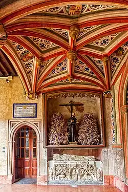 Before his death, John II had proposed Gonzalo for the diocese of Córdoba. The bulls confirming his election came on 16 August 1454. As bishop he continued to visit his monastery and favoured it and other Hieronymite houses with alms. He ordered the construction works at Guadalupe, including the library and his own funeral chapel.[2] The chapel, in a style inspired by Rogier van der Weyden, was the work of Egas Cueman between 1458 and 1460.[1]