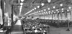 In the basement, there were locker rooms with 5,500 lockers, 12 bowling alleys, six rifle ranges, a large clothes checking room and a barber shop.[3] A tunnel from the factory building across the street was created give access to the basement.[4]