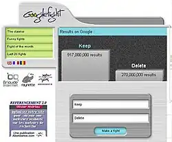 - ^ Olivier Andrieu (February 7, 2005). "Nouvelle version pour Googlefight!". Abondance.com (in French).