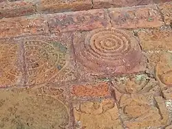 The central theme of the temple decoration is the battle between Rama and Ravana's army. At present there are not many terracotta plaques remaining in the left and central arches. However, a comparison with older images shows both groups fighting with bow and arrow, swords, and spears. According to images taken by the Archaeological Survey of India in the 1930s, the terracotta plaques set in the central arch depicts Ravana as Dashanan shooting arrows at Rama's army. Most of the decorative bricks of the columns are missing or have been damaged.[18]