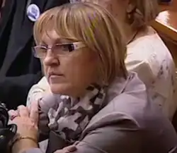 She served as deputy leader of the Radical Party's parliamentary group from 2008 to October 2009, when she was replaced by Aleksandar Martinović.[14] In November 2009, she attracted some notoriety by throwing a shoe at Democratic Party parliamentarian Gordana Čomić, who was then chairing a legislative debate.[15] She did not seek re-election in 2012 and has not sought a return to the assembly since then.