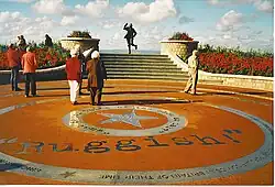 - Comedy Carpet (2011), Blackpool: reportedly Britain's largest piece of public art, an area of 2,200m2 or 1,800m2 (sources vary) on Festival Headland on Blackpool Promenade, opposite Blackpool Tower. It shows jokes and punchlines from comedians who have performed in Blackpool over the decades, totalling 160,000 letters. Each letter is cut from granite and inset in white concrete, in a variety of typefaces.[13][14] Five months after it was opened, the local council controversially removed part of the work because viewers were thought to be in danger of stepping backwards into the path of trams.[15] The work earned Young the 2012 Marsh Award for Excellence in Public Sculpture.[16] and in 2014 was joint winner of the International Society of Typographic Designers' International Typographic Award,[17]