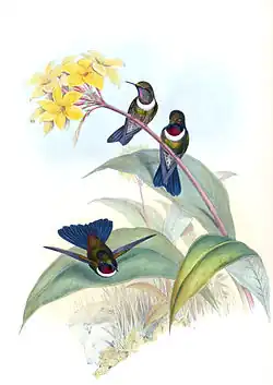 - ^ a b BirdLife International (2016). "Gorgeted Sunangel Heliangelus strophianus". IUCN Red List of Threatened Species. 2016: e.T22687890A93173511. doi:10.2305/IUCN.UK.2016-3.RLTS.T22687890A93173511.en. Retrieved 21 January 2022.
