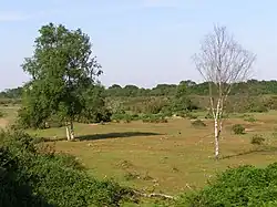 The fort once occupied the southwestern corner of Gorley Common on Gorley Hill, a gravel-capped spur that points southwest into the Avon valley next to the hamlet of North Gorley, between the towns of Fordingbridge and Ringwood. The earthworks were destroyed in the 1950s and '60s when the common's new owners carried out large-scale gravel extraction works, effectively "scalping" the hill. The tall linear earthen banks present on the hill are a relic of the quarrying process and not prehistoric in origin.[1] The site is now grass, with some gorse and silver birch. The area is now owned and managed by Hampshire County Council.