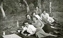 He mentions that two women who were at Gorman House when he arrived were the first residents of the hostel.[6] These were Miss Lida Sutor who was a typist at the Survey Office and Vivian Thwaite. Vivian was a stenographer and was involved in many of the social activities. She was a member of the House and Recreation Committee whose role was to care for the wellbeing of residents and organize events such as the monthly dances at the hostel.[7] She is mentioned on numerous occasions in the Canberra Times as being present at these events. For example at one of the monthly dances it is mentioned that she was wearing a dress of "blue fringed georgette over silver tissue".[8]