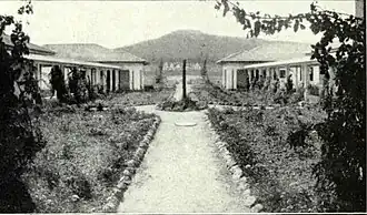 "The post-office, where our office is, is two miles away from Gorman House, the Government, hostel for typists, where we stay. The hostel consists of a number of pavilions all linked together with latticed walks, and there are rose trees all around and creeping roses up the pillars. We walk to and from work, but get a bus at dinner (lunch) time.'. The, air is so fresh and bracing, and the walks are beautiful."[12]