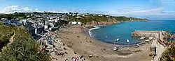 The village lies in a cove between two sandy beaches.[2] Vault Beach (also known as Bow beach) is south of Gorran Haven and Great Perhaver Beach is to the north, both beaches are naturist beaches.[3][4]