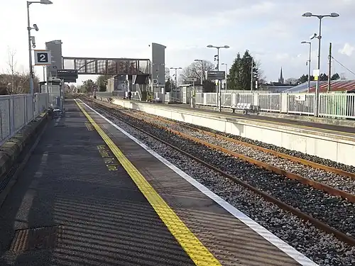 The station originally opened on 15 September 1869 and closed on 5 April 1976. As part of Iarnród Éireann's Western Rail Corridor project, under the Transport 21 plan, Iarnród Éireann rebuilt the station.[1] Work on Gort station was planned to start in 2008. However, an objection raised by a local company on the basis of traffic hazards regarding the proposal to rebuild the old station.[2] In January 2009, this objection was withdrawn, allowing Iarnród Éireann to begin work rebuilding the station.[3] The new station opened in March 2010.[4]