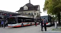 PostAuto Schweiz and RegioBus bus lines depart from the bus station in front of the station building (Bahnhofplatz).[5][6][7]