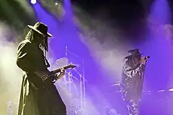The mixture of goth and Western music has brooding and dark motifs interwoven into cowboy culture while incorporating themes of death, occult and superstition.[10] Crossover elements are seen in gothic country, but are unique to experiences of the American frontier, including Northern Mexico. The music encompasses storytelling and the cultural diversity of instrumentation associated with the American frontier.[11] The spaghetti Western sound of Ennio Morricone is influential to the genre.[12] Tom Waits, Johnny Cash, Steve Earle, The Handsome Family and Richard Marx have written Gothic Western songs.[8]