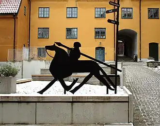 In the Middle Ages, the block was in the part of the town which was the center of commerce and trade. At that time the square-shaped block had numerous smaller buildings divided into three block by two narrow alleys running in an east-westerly direction. A number of the foundations for these old houses are still intact under ground.[13] This structure was used until 1697, when the southern alley disappeared and the building plots were redistributed. In 1777, the Swedish government bought the whole block to use as one of its brännvin distilleries (Kronobränneri).[13] At that time the block consisted of 18 buildings of varying size. These were partly demolished, rebuilt, added to or converted, giving the block its present layout. The system with these types of distilleries did not last long and in 1813, part of the block was sold to a merchant and starting from 1830, the rest of the houses were used as storage for weapons and ammunition by the Swedish army.[14]