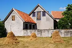 The main building on the Kattlunds farm in Grötlingbo is partially medieval. The oldest part of the house is from the 13th century. The first house was expanded upon during the late 1700s and early 1800s, and it has been preserved in that state.[26] The farm is named after the first known owner, Botulf Kattlund a judge from Eke thing.[27] In 1922, the farm was bought by Gotlands Fornvänner. The acquisition was made possible by a donation from Wilhelmina von Hallwyl.[28] Adjacent to the farm is a 12th-century citadel. It was still three stories high in the 18th century. As archeological examination of it was made in 1950.[26] As of 2015, the farm is an open-air museum during the summers, hosting markets, jousting tournaments and private events.[29]