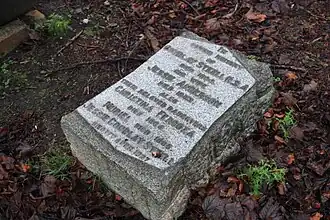 He died on 31 January 1894 at 23 Minto Street, Edinburgh[7] and was buried in Morningside Cemetery, Edinburgh with his wife Jessie Anderson who had died in 1883. The exceptionally modest gravestone has fallen, and lies forlornly in the westmost section of the cemetery, adjacent to modern housing developments.