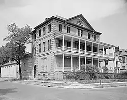 The Gov. William Aiken House (also known as the Aiken-Rhett House, or the Robinson-Aiken House) was built in 1820 at 48 Elizabeth Street, in the Wraggborough neighborhood of Charleston, South Carolina.[2] Despite being known for its association with Gov. William Aiken, the house was built by John Robinson after he bought several lots in Mazyck-Wraggborough in 1817.[3] His house was originally configured as a Charleston double house with entrance to the house from the south side along Judith Street. The house is considered to be the best preserved complex of antebellum domestic structures in Charleston.[4] It was the home of William Aiken, Jr., a governor of South Carolina, and before that the home of his father, the owner of South Carolina Canal and Railroad Company, William Aiken.[5]