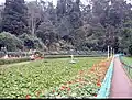 The informal landscape of the garden from the entrance, merge into the formal fashioned beds laid out in an Italian pattern, surrounding the centrally situated octagonal bandstand. This part of the garden looks attractive with several varieties of colourful annuals. In the foreground, is a crescent-shaped lily pond for growing several varieties of aquatic plant species. The tree species grown in this part of the garden are Prunus cerasoides, Saurauja nepaulensis, Grevillea hilliana, Aesculus punduana, Pinus sabineana, Cupressus torulosa, Syncarpia glomulifera, Pinus roxburghii, Albizzia julibrissin, etc.[10]