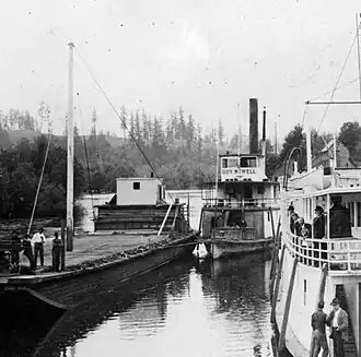 In May 1885, Gov. Newell had a contract to carry the mail on a route from Aberdeen, W.T. up the Chehalis River.[13] Capt. James P. Whitcomb (1824-1901) was master of Gov. Newell on the mail run between Montesano, Washington and Westport, Washington, as was his son, Capt. George A. Whitcomb (1854-1939).[5][14] Westport was then known as Peterson's Point.[5] William H. Clough was the boat's engineer at the time.[13] Gov. Newell proved to be not profitable on Grays Harbor.[6]