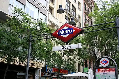 Goya [ˈɡoʝa] is a station on Line 2 and Line 4 of the Madrid Metro.[1][2] It is named for the painter Francisco Goya (1746–1828).[3]