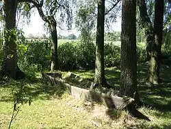 Around 400 metres behind Gröben in the direction of Nuthe is Gröbener Kietz, which was independent until 1896 and consists of a handful of houses. Around the year 2000, it was still referred to as Kietz on the place name sign; in 2004, only the inscription Gröben remained, and only the street sign Kietz still indicates the special feature that one of the few so-called "real" Kietze has been preserved here. A Kietz was a service settlement, usually located near a castle and mostly as a fishing village at river crossings. These "real" Kietze only exist east of the Elbe River.[12]