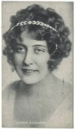 Grace Cunard (born Harriet Mildred Jeffries; April 8, 1893 – January 19, 1967) was an American actress, screenwriter and film director.[a] During the silent era, she starred in over 100 films, wrote or co-wrote at least 44 of those productions, and directed no fewer than eight of them.[1] In addition, she edited many of her films, including some of the shorts, serials, and features she developed in collaboration with Francis Ford. Her younger sister, Mina Cunard, was also a film actress.