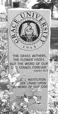 - ^ Hatfield, D. "$1 Million Gift Establishes Grace University School of Professional and Graduate Studies". Grace in the News. Retrieved 26 September 2014.