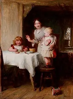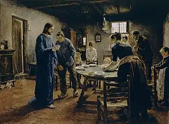 A grace is a short prayer or thankful phrase said before or after eating.[1] The term most commonly refers to Christian traditions. Some traditions hold that grace and thanksgiving imparts a blessing which sanctifies the meal. In English, reciting such a prayer is sometimes referred to as "saying grace". The term comes from the Ecclesiastical Latin phrase gratiarum actio, "act of thanks." Theologically, the act of saying grace is derived from the Bible, in which Jesus and Saint Paul pray before meals (cf. Luke 24:30, Acts 27:35).[2] The practice reflects the belief that humans should thank God who is believed to be the origin of everything.[2]