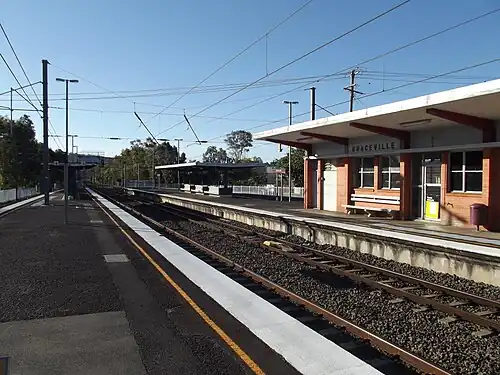 Graceville railway station is a heritage-listed railway station at 110 Long Street, Graceville, City of Brisbane, Queensland, Australia. It is on the Main line, serving the suburb of Graceville. It was designed by John Sidney Egan and Jan Kral and built from 1958 to 1959 by Railways Department. It was added to the Queensland Heritage Register on 12 June 2009.[1]