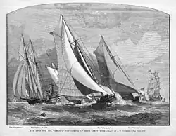 In October 1883, there were two races. The first was the Goelet Cup regatta, sponsored by Ogden Goelet, for the New York Yacht Club at Newport, Rhode Island on August 6, 1883. The course was from Brenton Reef Lightship around Sow & Pigs Lightship (now Vineyard Sound) and return home. The Montauk, owned by Samuel R. Platt, won the $1,000 cup for schooners and the Gracie, owned by Flint & Earles, won the Goelet prize for sloops.[15] The second race was on October 11, 1883, between the sloop yacht Gracie and Fanny, of New York. They started from Sandy Hook. The Gracie came in second[16]