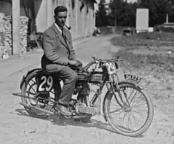 Walker was a motorcycle despatch rider in the First World War for the Royal Engineers Signal Service, where he received a leg injury requiring him to ride a motorcycle with a modified brake pedal. Despite this he had a successful racing career with Rudge, Sunbeam and Norton. Riding a 493cc Sunbeam he was a member of the victorious British International Trophy Team at the ISDT held in Buxton 1926 and Ambleside 1927 then saw success on the Silver Vase team in 1928 at Harrogate and 1932 Merano in Italy. Road successes included winning the Ulster Grand Prix on a Rudge Ulster in 1928, the first road race win with an average of 80 mph.[5] Walker also won the 350cc class at the 1931 North West 200, again on a Rudge. He rode many times in the Isle of Man TT, winning the lightweight (250cc) class in 1931,[6] and became president of the TT Riders Association.[7]