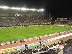 From 11 November 2014, the stadium went under restructuring works which lasted for 16 months. After the remodelization, the running track was removed to turn the venue into a football-specific stadium, with the seats closer to the playing ground.