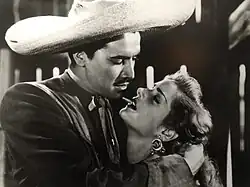 From the release of the film Honeysuckle in 1938, Libertad Lamarque was the most popular artist in Argentine cinema.[1] She had made her name on stage and radio as a tango singer and she was able to capitalize on that success by combining her singing and acting abilities in pictures that pulled their melodramatic plots straight from the tales told in popular tangos.[2] She often played the part of a tango singer whose romance with a wealthy suitor is thwarted by his snobbish family, making her a compelling symbol of porteño popular culture with a strong anti-elitist identification.[2] In 1945, Larmarque starred in La cabalgata del circo, a pot-boiler about a theatrical troupe in nineteenth-century Argentina, which included in the cast as a supporting player, Eva Duarte, who was being courted by then Colonel Juan Perón, who was on his way to becoming President of the country.[3] Tensions on the set ran high, as Duarte flaunted her relationship with Argentina's strongman by turning up late every day, having him pick her up from the studio in his state limousine and generally behaving as if she were the star of the picture.[4] When Duarte sat in Lamarque's chair one day, Lamarque slapped her across the face, sparking a cause célèbre that delighted Duarte's many enemies.[3] Lamarque added to the intrigue by suggesting that the two had been vying for the attentions of Perón.[5] After October 17, 1945, Loyalty Day, when demonstrations organized with the cooperation of Duarte resulted in Perón's release from a brief stay in jail, Lamarque's films were banned in Argentina.[4] The next year, after Duarte and Perón had married and Perón had been elected President of Argentina, Lamarque fled Buenos Aires for Mexico City, where her films had been extremely popular for years.[6]