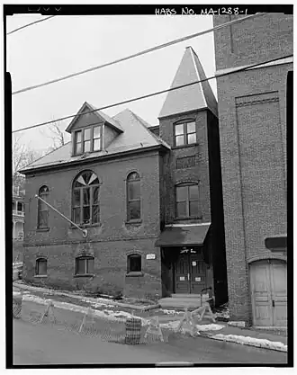 The hall was the meeting place of the Gen. Sedgwick GAR Post No. 17, which was one of 210 posts in the Department of Massachusetts.[2] The post was named in memory of Gen. John Sedgwick. The Historic American Buildings Survey funded by the WPA in the 1930s reported that this hall was one of only 20 GAR halls left in Massachusetts, of which only 4 were brick. It was the only brick hall that also had a turret tower.[3] According to the Town of Orange Massachusetts Historical Society, the building was torn down in the early 1990s.