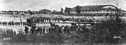 In the early days, the grandest building in the resort was the Dance Pavilion, built in 1918[3] and rated by some as the largest dance hall of its time in the Commonwealth, but it was destroyed in a fire that began at 11 am on September 5, 1950.[4] Prior to the fire, CNR had put the resort buildings up for sale.[5] Along with the incredible beaches, the dance hall made Grand Beach a very attractive day trip destination for Winnipeggers in the 1920s, that was made possible by regular train services to Winnipeg, with the last train leaving at midnight.[6] A Harvey J. Emke of Winnipeg bought the properties from CNR in 1951.[7]