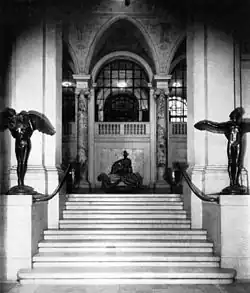 Having worked tirelessly to promote American art at home the 1920s, in 1930 Walter Leighton Clark and the Grand Central Art Galleries spearheaded the creation of the U.S. Pavilion at the Venice Biennale.[58] Up until then there was no place at the Biennale dedicated to American art, and Clark felt that it was crucial to establishing the credentials of the nation's artists abroad.[59] The pavilion's architects were William Adams Delano, who also designed the Grand Central Art Galleries, and Chester Holmes Aldrich. The purchase of the land, design, and construction was paid for by the Galleries and personally supervised by Clark. As he wrote in the 1934 catalog: