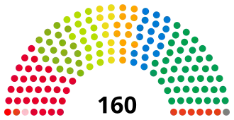 It consists of 160 members (as of 2006) elected by proportional representation for a four-year term of office. The French-speaking part of the canton, the Bernese Jura (districts of Courtelary, La Neuveville and Moutier) has 12 seats guaranteed, and 3 seats are guaranteed for the French-speaking minority of the bilingual district of Biel/Bienne.
