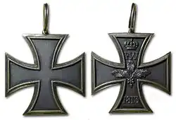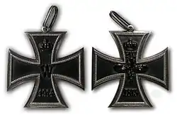 The Grand Cross of the Iron Cross (German: Großkreuz des Eisernen Kreuzes) was a decoration intended for victorious generals of the Prussian Army and its allies. It was the second highest class of the Iron Cross, following the Star of the Grand Cross of the Iron Cross, which was awarded only twice. Along with the Iron Cross 1st and 2nd Class, the Grand Cross was founded on 10 March 1813, during the Napoleonic Wars. It was renewed in 1870 for the Franco-Prussian War and again in 1914 for World War I. In 1939, when Adolf Hitler renewed the Iron Cross as a German (rather than strictly Prussian) decoration, he also renewed the Grand Cross.